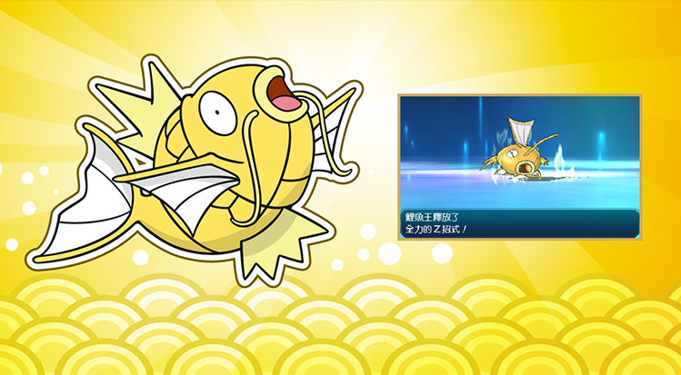 在新加坡、香港、台灣等地期間限定贈送進化成紅色暴鯉龍所需的「金色鯉魚王」和道具「神奇糖果」!在『精靈寶可夢 太陽/月亮』販售店鋪可以得到刊登有兌換序號的宣傳單,輸入號碼后可以得到神秘禮物哦!